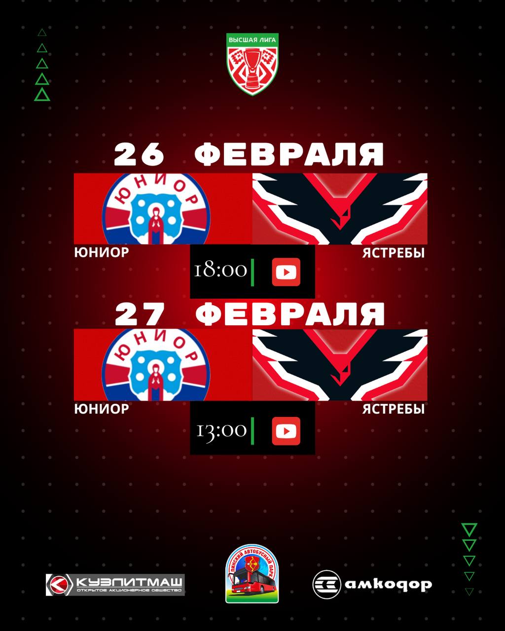 Встречи пройдут в Минске против «Юниора». Именно тут состоится борьба за 2 место в таблице .