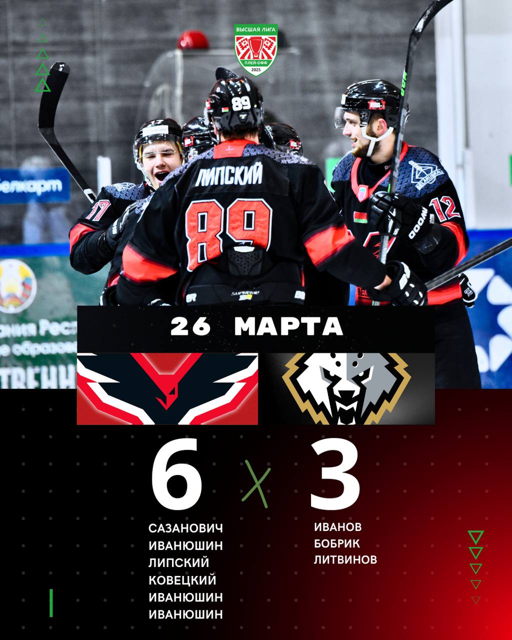 «Ястребы» 6-3 «Белсталь» ( 3:0, 2:1, 1:2)