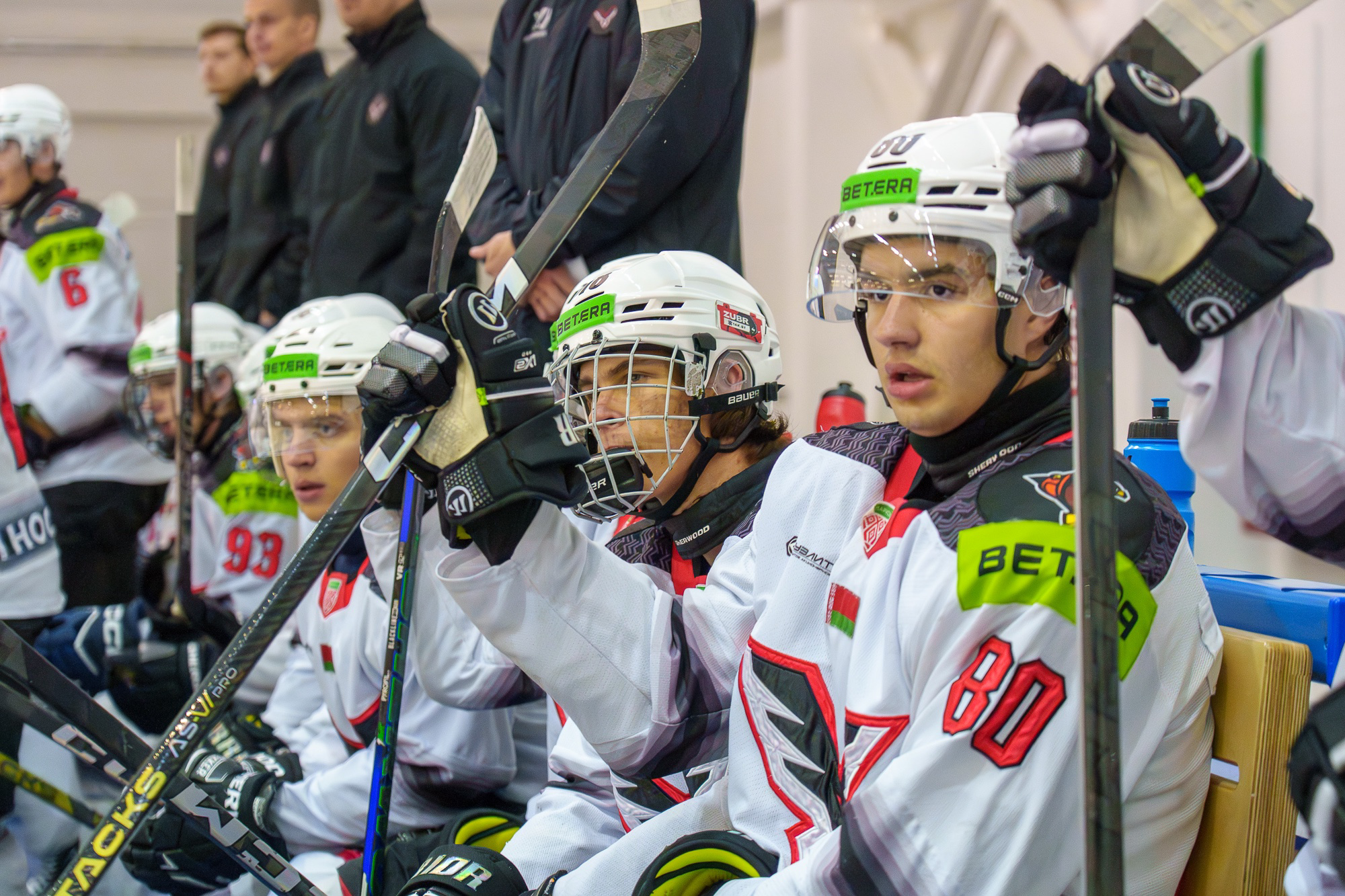 В первом матче за «Ястребов» забрасывали Иван Ковецкий, Артур Трутнев, Арсений Палто, Евгений Левша, Роман Огнев и Никита Царикевич. Приз лучшему игроку матча был отдан нашему нападающему Вячеславу Азарову.