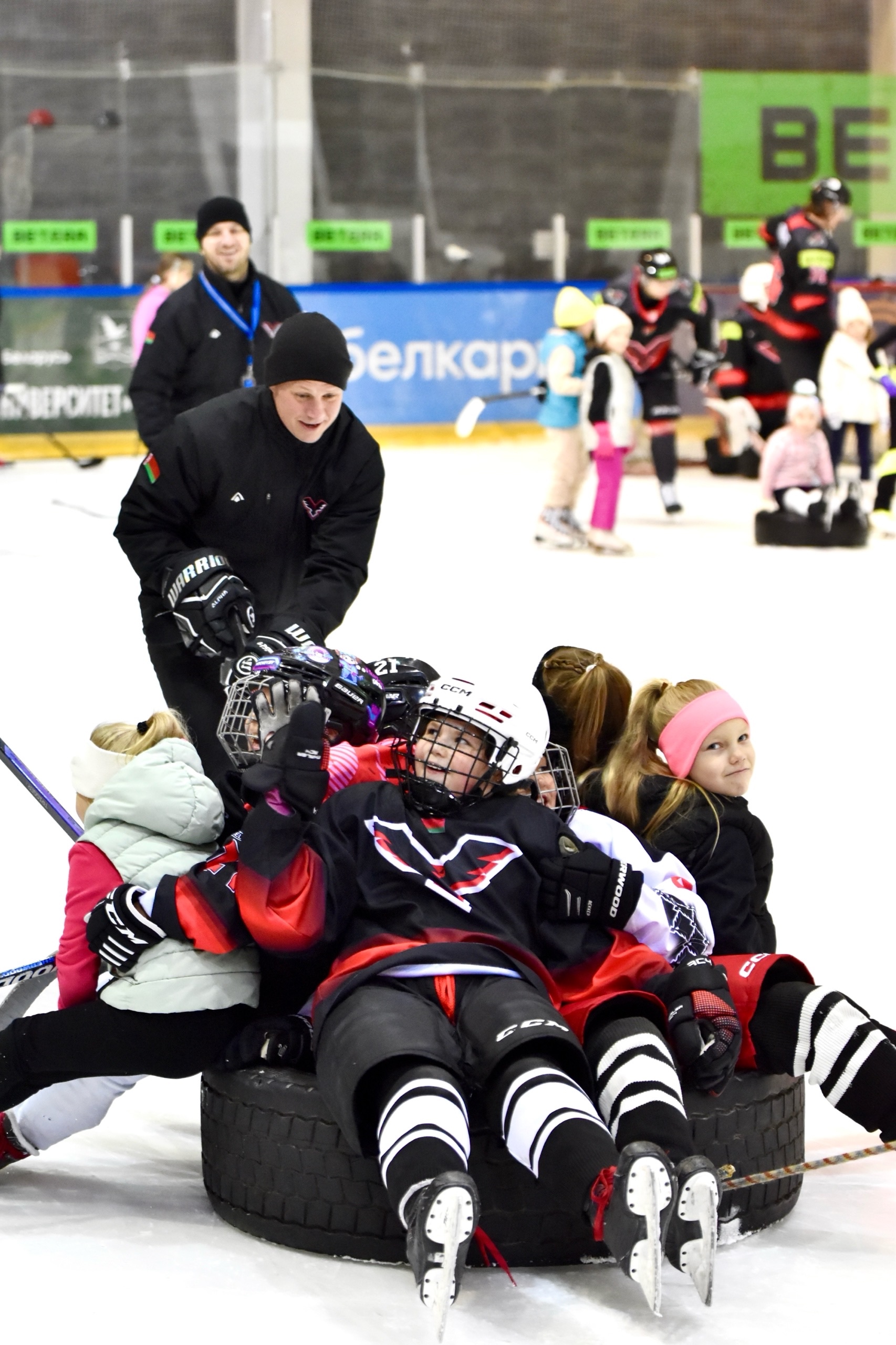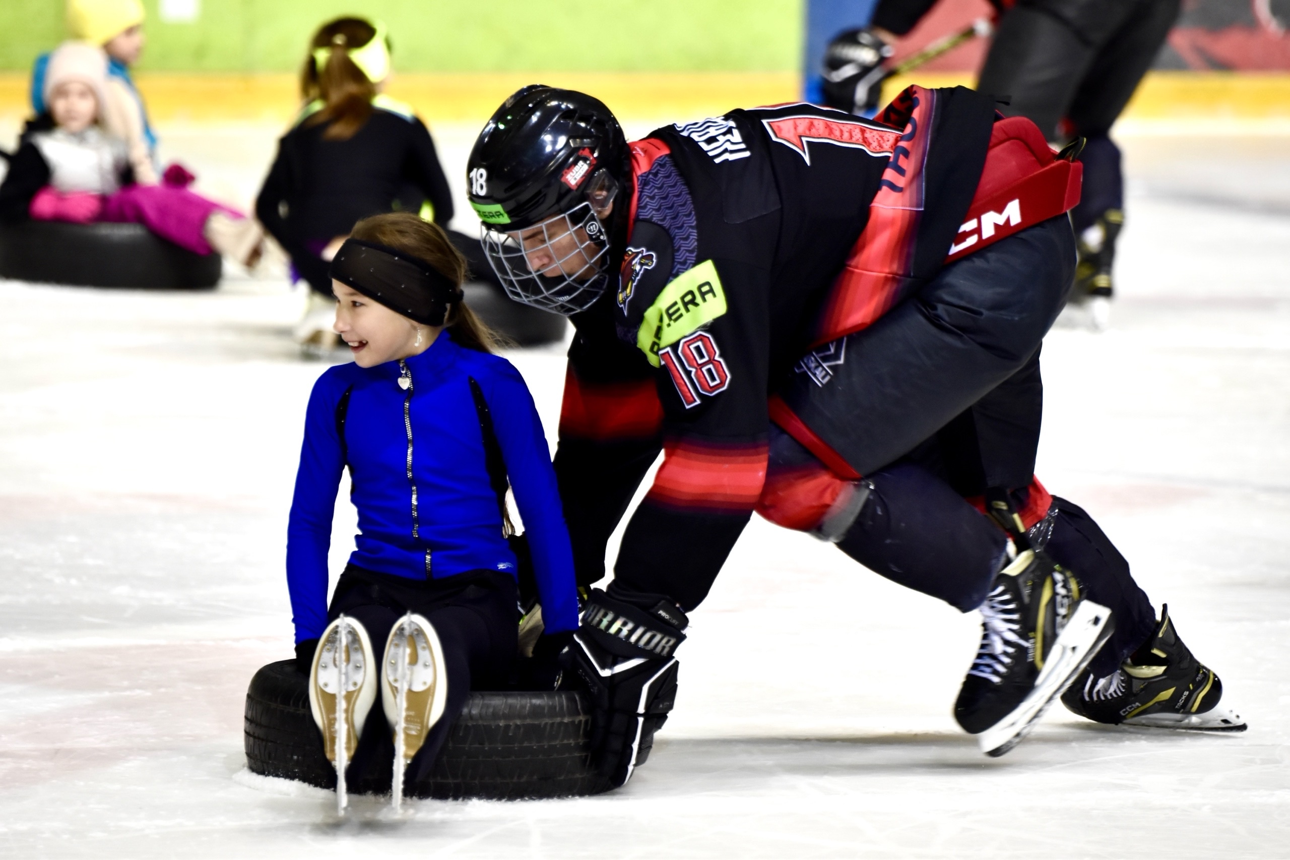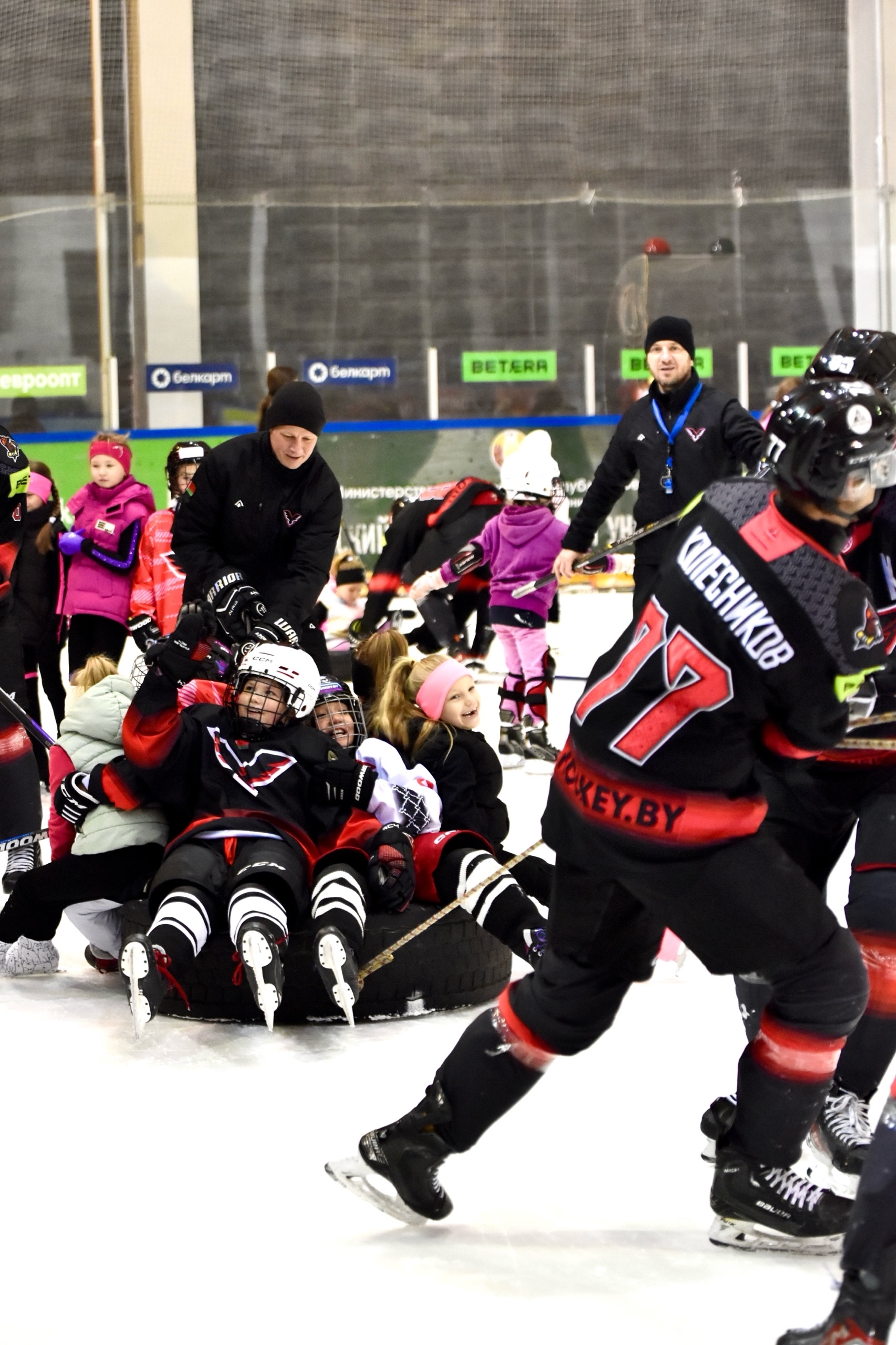 Девочки получили время, чтобы повозиться с шайбой, пообщаться с игроками и попросить уделить еще больше внимания, а именно - покатать на шинах. Юные участницы могли забросить шайбу нашим вратарям или просто повеселиться рядом с хоккеистами. После тренировки случилось «общекомандное» фото и экскурсия по раздевалке «Ястребов». Там они увидели, как устроен быт наших игроков, ну и, конечно, не преминули задать кучу интересных вопросов про этот замечательный вид спорта – хоккей.