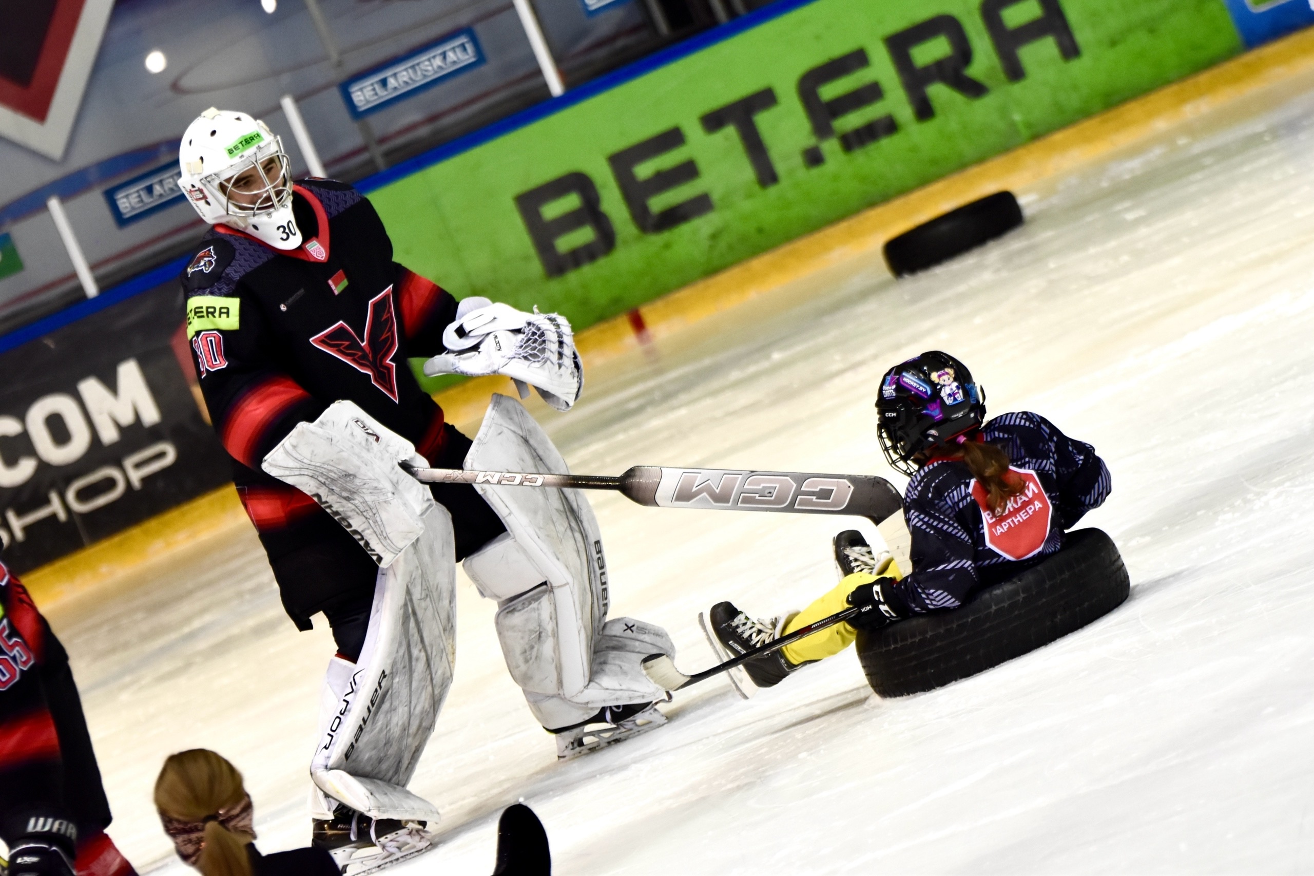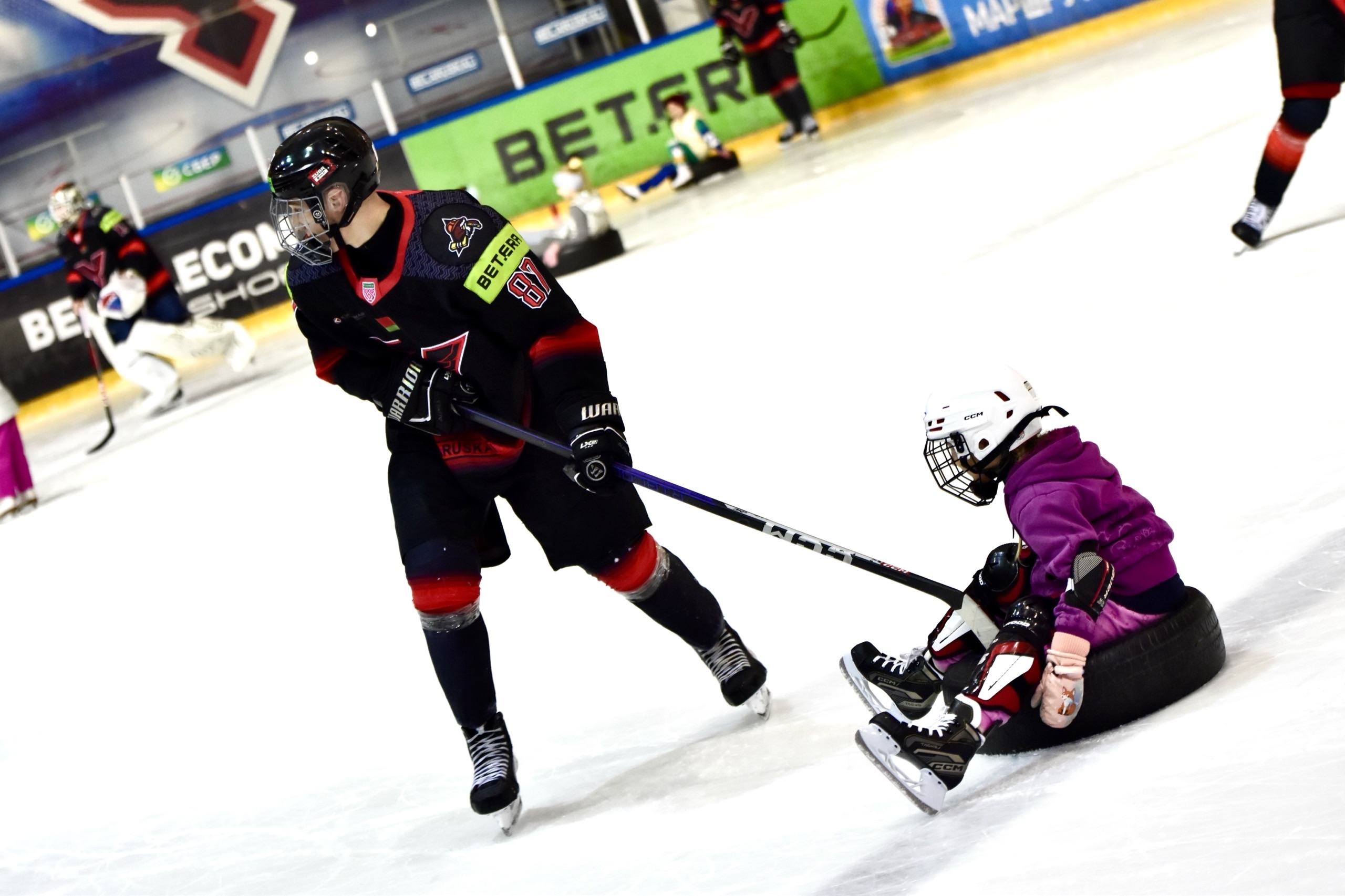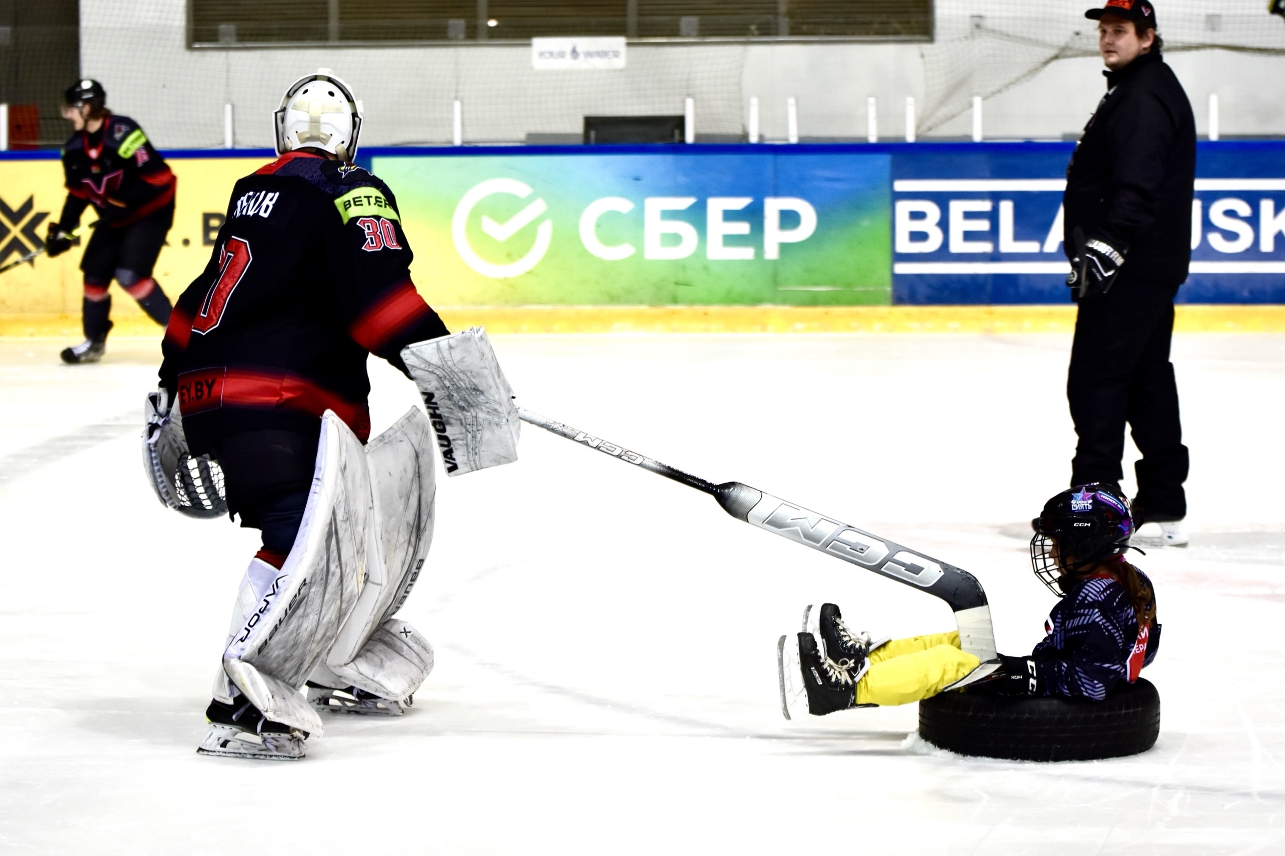 Девочки получили время, чтобы повозиться с шайбой, пообщаться с игроками и попросить уделить еще больше внимания, а именно - покатать на шинах. Юные участницы могли забросить шайбу нашим вратарям или просто повеселиться рядом с хоккеистами. После тренировки случилось «общекомандное» фото и экскурсия по раздевалке «Ястребов». Там они увидели, как устроен быт наших игроков, ну и, конечно, не преминули задать кучу интересных вопросов про этот замечательный вид спорта – хоккей.