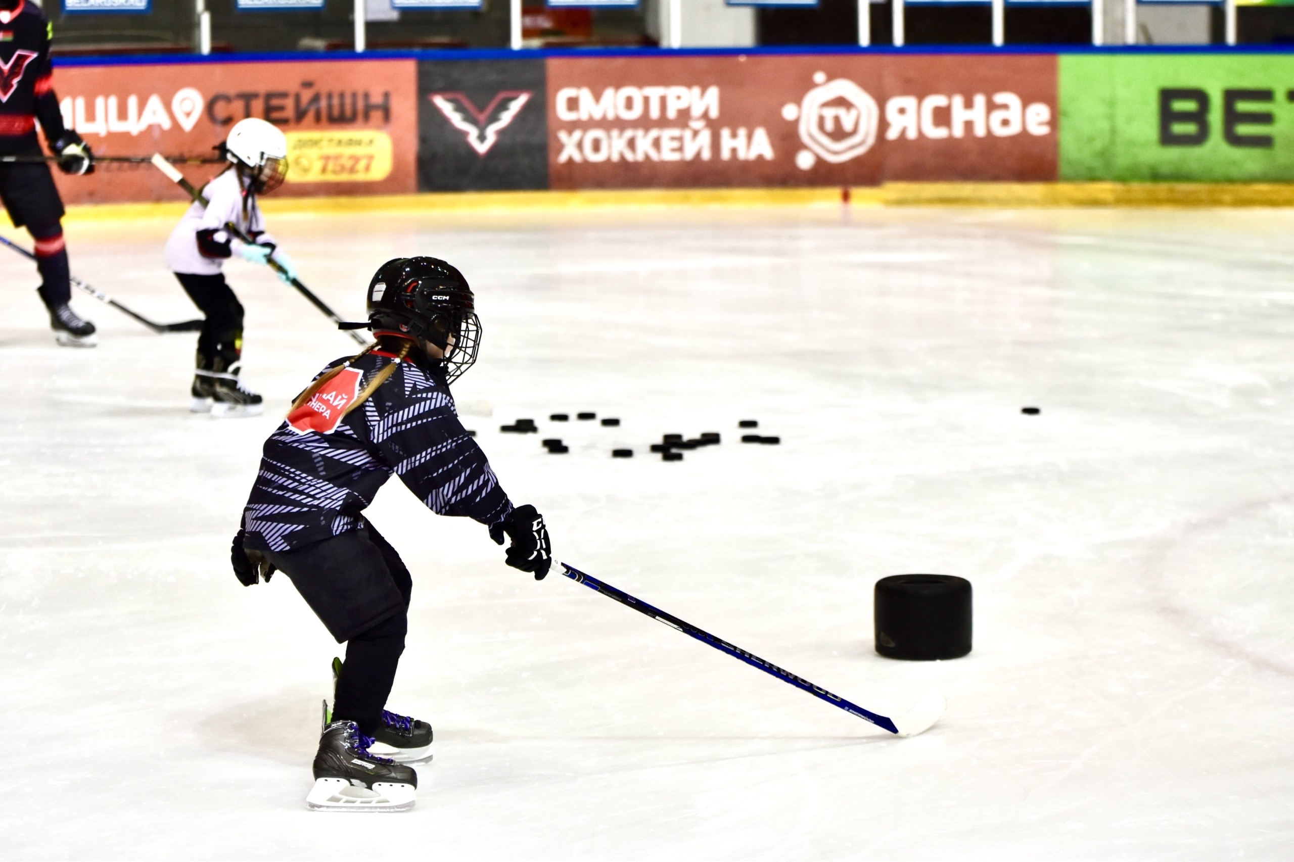 В субботу, как известно, праздник прошел на главной арене страны – «Минск-Арене». В столице Полесья решили не отставать и повторить нечто похожее. Пришло около 50 девочек, среди которых значились фигуристки, хоккеистки и просто те, кто решил присоединиться к незабываемому для каждого ребенка шоу. Каждой малышке была выдана клюшка, после чего стартовал тренировочный процесс – им руководил тренерский штаб «Ястребов». Традиционная раскатка, разминка, упражнения на катание и броски, чего только не было.